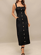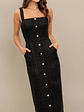 Elegante vestido diseñado con botones frontales y prácticos bolsillos a los costados. Este vestido combina comodidad y estilo, haciéndolo perfecto para diversas ocasiones, desde un paseo informal hasta una salida especial. Su corte fluido realza la figura, mientras que los botones añaden un toque chic.